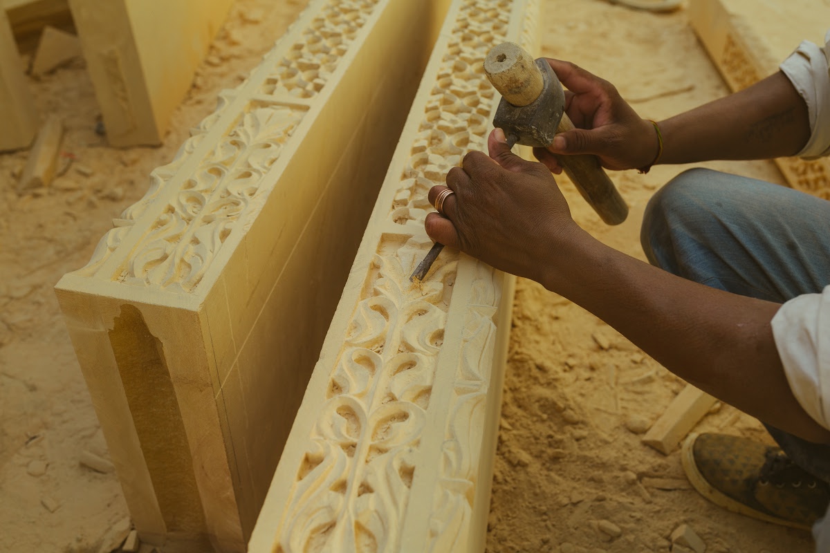 while preserving the rich heritage of Jaisalmer yellow sandstone. Our facilities, technology, and skilled workforce enable us to deliver exceptional craftsmanship for temples, heritage sites, luxury hotels,villas, and commercial projects